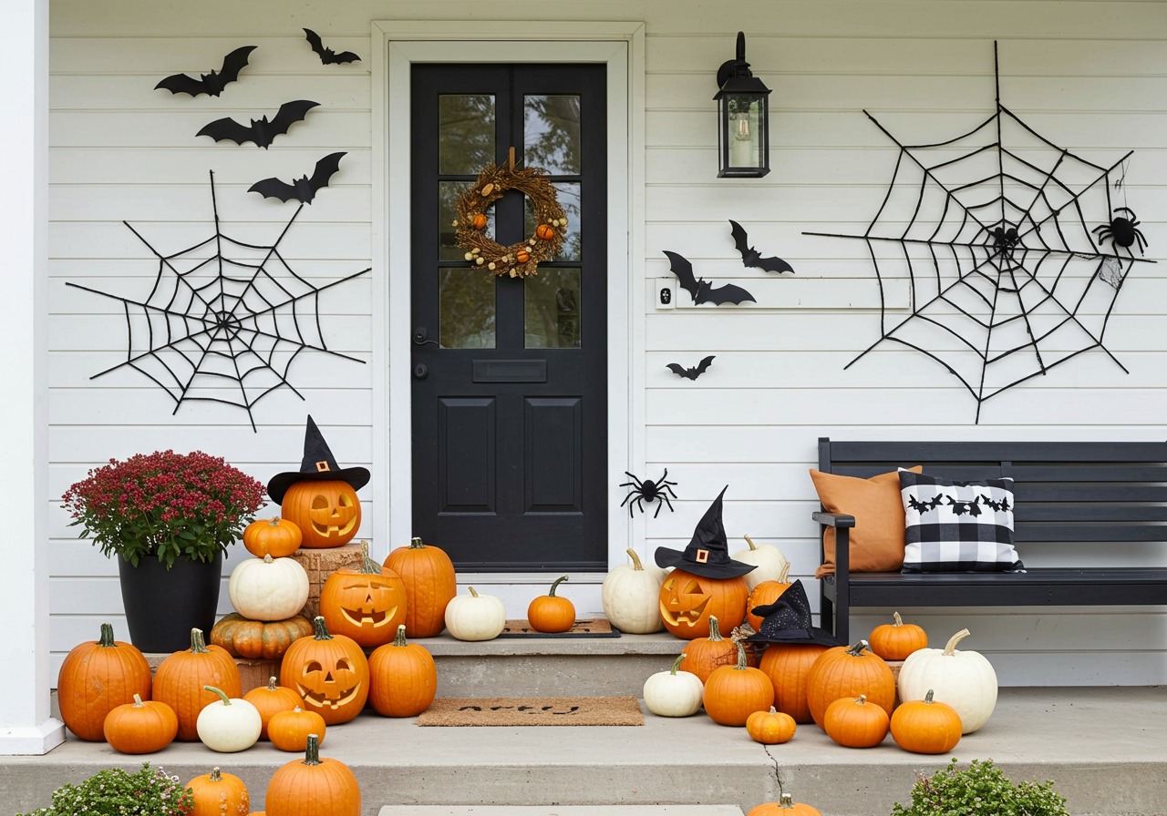 A tasteful wreath of fall foliage will make your front door a focal point. If your front door color is starting to fade, you might even want to paint it a color that stands out. Consider red, black, or yellow to get trendy this fall season.
