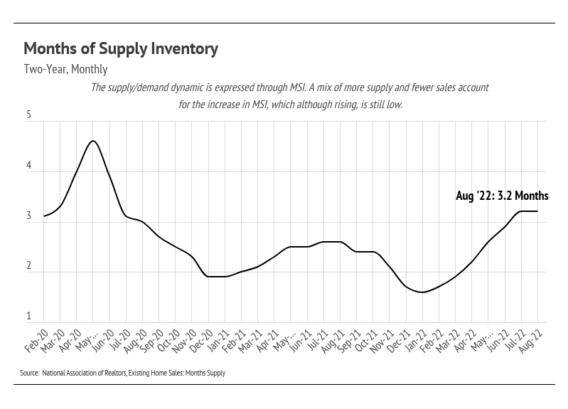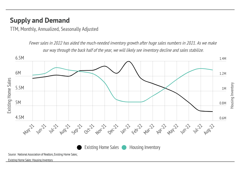 Demand for homes has declined over the past three months, which, besides the rate increase, is the seasonal norm. Because home sellers are often buying as they sell, new listings have dropped as well, causing inventory to decline. Inventory is still historically low and will be the one major buoy for home prices. The market has shifted to softening demand and softening supply. Mortgage applications are down 29% year-over-year according to the Mortgage Bankers Association. This, too, isn’t terribly surprising. Generally, homes aren’t bought and sold over and over in short time frames. The high number of sales in 2021 indicates fewer sales in 2022, especially because the buying incentives in 2021 are no longer in place. We can finally say that the market is cooling, but after the hottest two years since the mid-2000s, cooling indicates a healthier market.